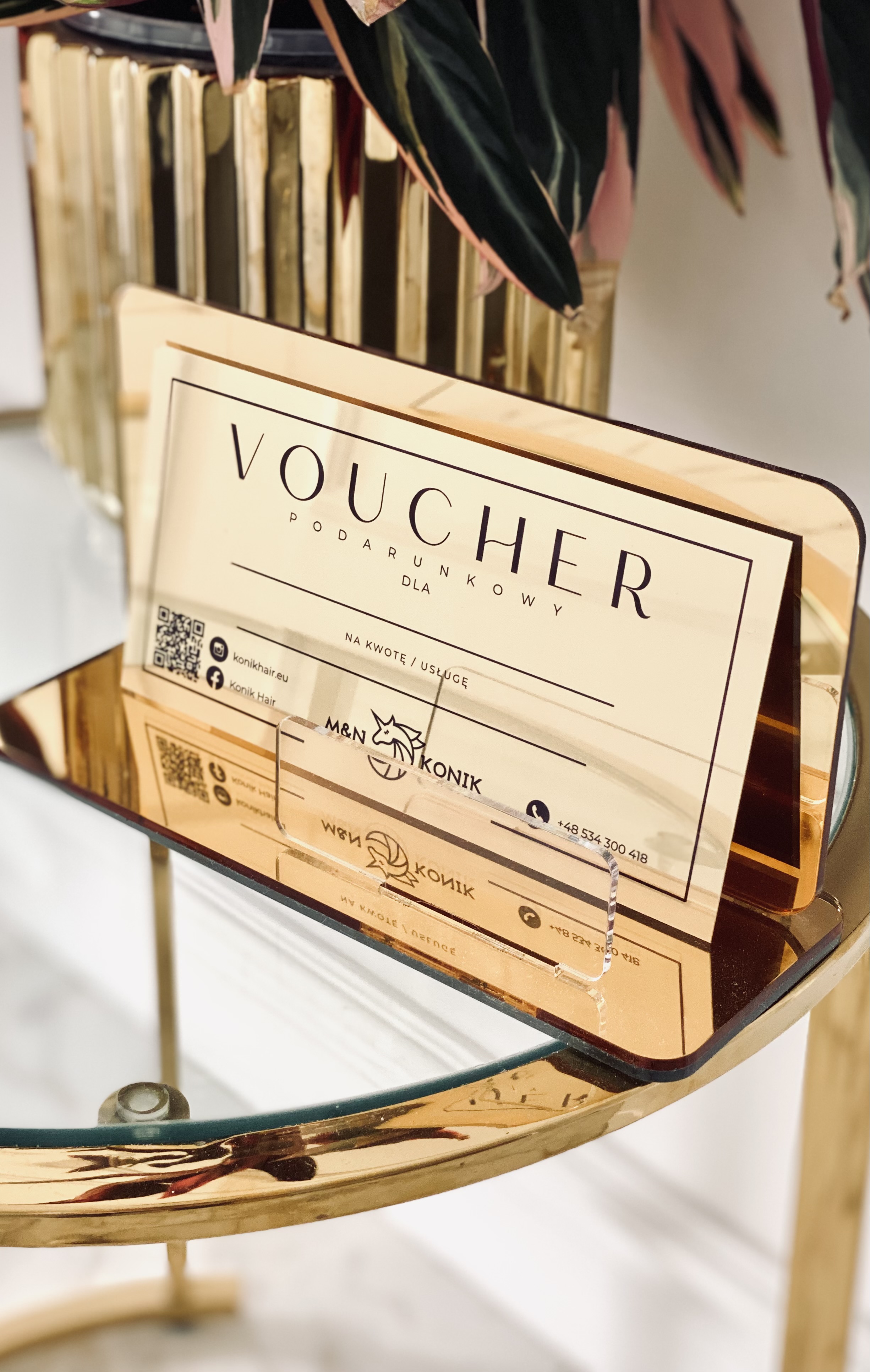 Lustrzane vouchery w kolorze złotym lub srebrnym to elegancki sposób na wyróżnienie oferty. Każdy z nich pakujemy w ozdobną kopertę, gotową do wręczenia klientowi.