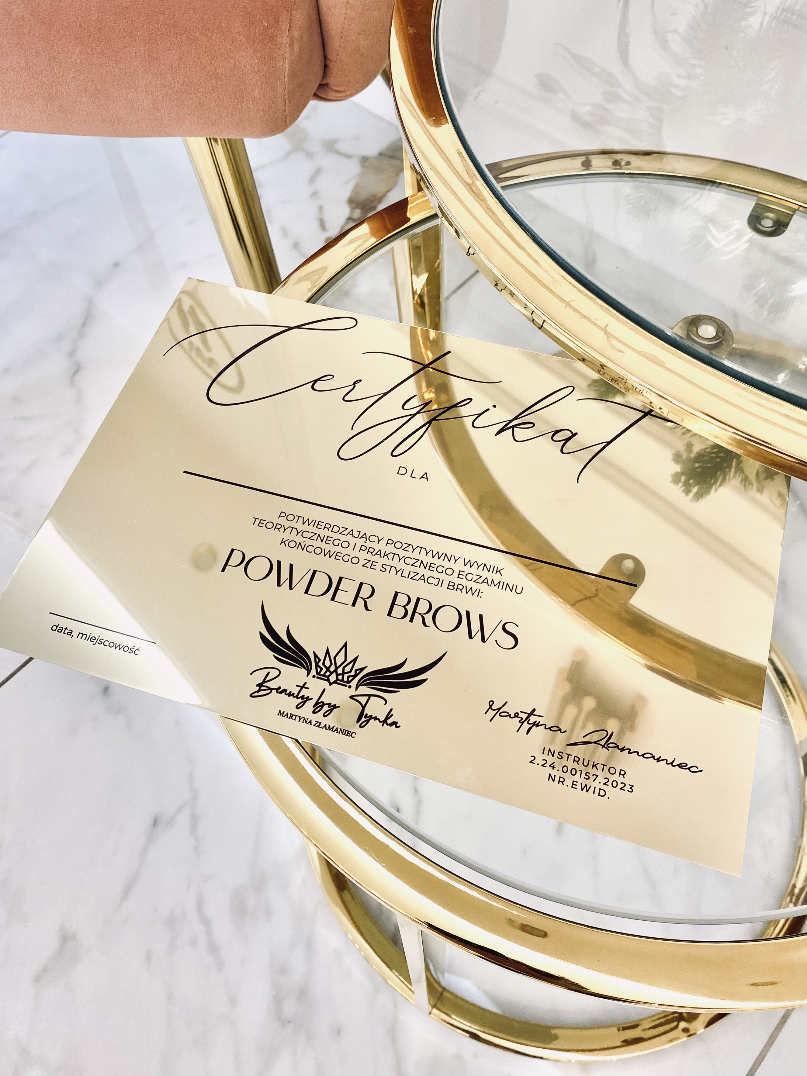 Lustrzane certyfikaty robią wrażenie już przy pierwszym spojrzeniu, idealne do wyróżnienia kursantów, partnerów lub osiągnięć. Każdy projekt dostosowujemy indywidualnie z możliwością personalizacji danych.